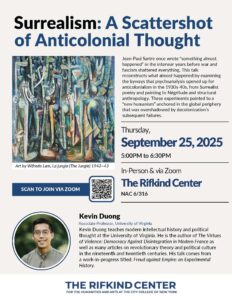- Surrealism: A Scattershot of Anticolonial thoughtAcross the globe, survivors, activists and nations search for productive ways of moving forward in the aftermaths of mass atrocities. Louis Bickford and Eduardo González have worked in many such areas. In conversation with Prof. Mikhal Dekel, they will talk about their lived experiences: challenges, successes, and the ideas and ideals that animate them.